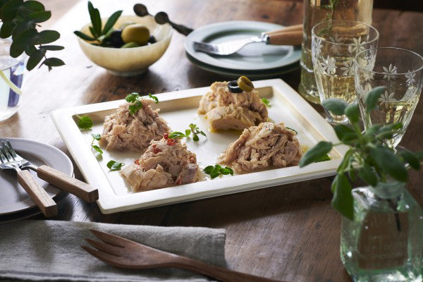夏に一本釣りした「びん長まぐろ」だけを使用。数十年以上の経験がある職人が一尾一尾丁寧に、血合いや骨を取り除くことで雑味がないツナ缶に仕上げています。