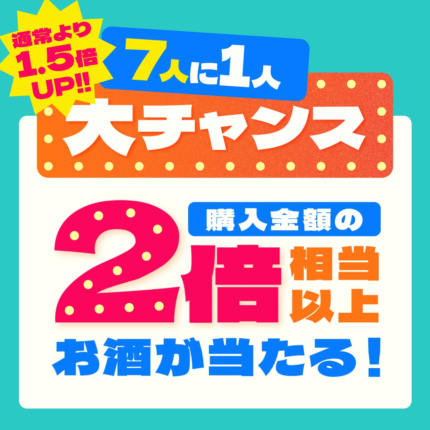 なんと本プランでは、LINEのID連携をしてくれた方限定で「確変」確率が1.5倍に!!7人に1人という超高確率で購入金額の2倍相当以上のお酒が届きます。最大10万円相当のお酒が、あなたのもとに届くかも……!?お得なこの機会を、お見逃しなく。