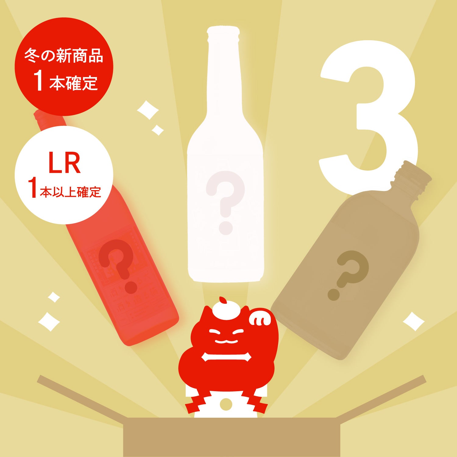 お酒の種類が選べるほか、冬の新商品が確定で1本以上入る、お得な4日間限定の3連ガチャです。