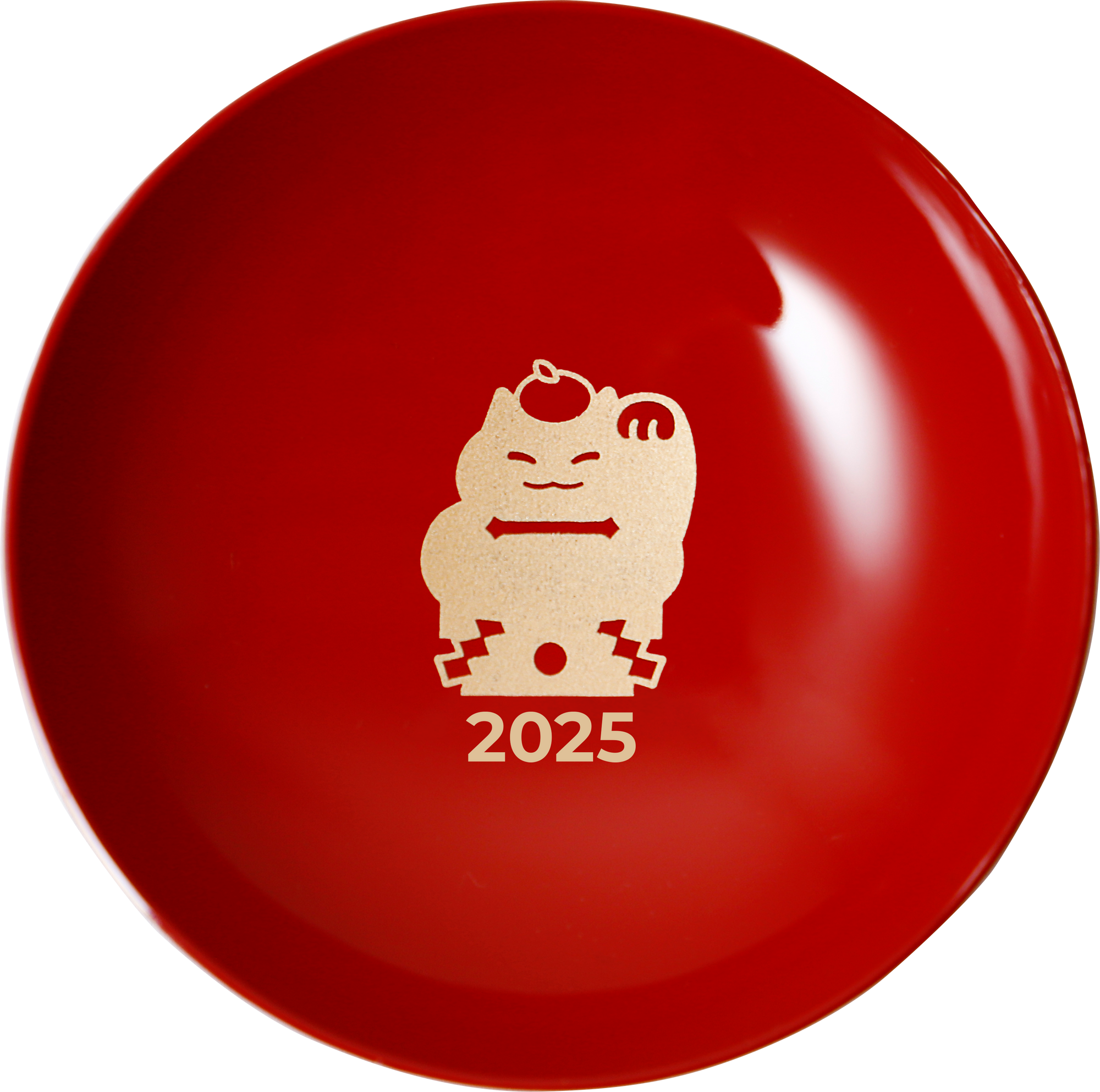 そんなくにゃんどをデザインした、2025年のお正月デザイン版。今年の福袋だけの平盃をゲットしてみませんか?