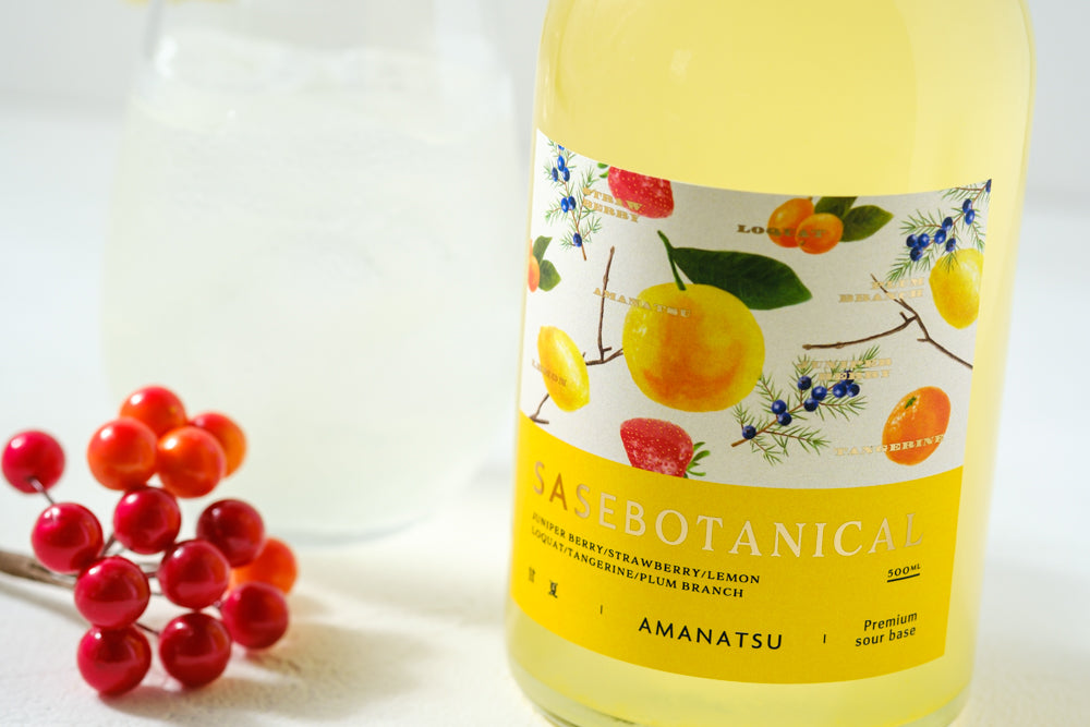 甘夏の爽やかな味わいに、ジンらしいボタニカルな風味がアクセントとなるプレミアムなサワーベース。ベースとなるジンには、長崎県産の温州みかん、レモン、びわ、苺、梅の枝など厳選された材料を使用しています。