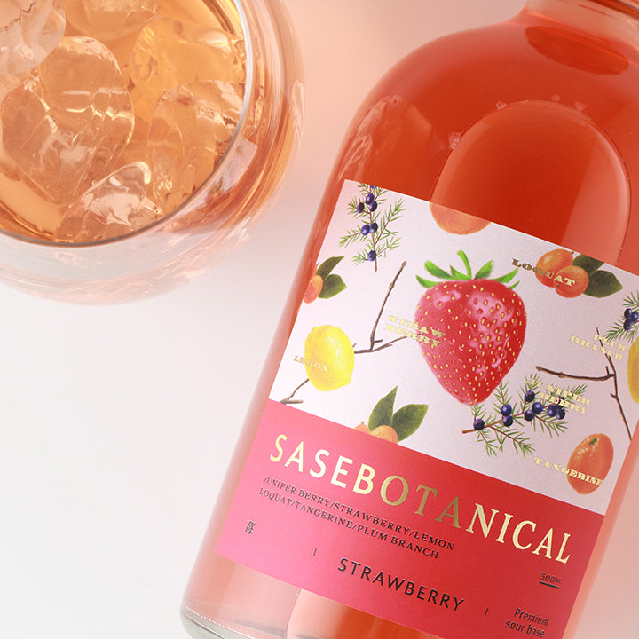 ジンをベースにしたプレミアムなサワーベース。ジンにはジュニパーベリーのほか、温州みかん、レモン、びわなどの厳選されたフルーツ、さらに梅の枝と長崎県産の贅沢な材料を使用しています。華やかな苺の甘みに対し、ジンのボタニカルな香りがぴったりのアクセントに。味わいと香りが見事に融合した、まさに贅沢な1本です。炭酸を入れて、特別感のあるサワーとしてお楽しみください。