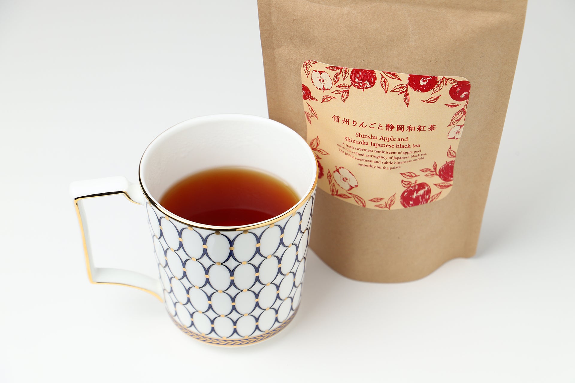 お茶の名産地、静岡県牧之原産の茶葉を100%使用。丁寧に温度を管理しながら発酵させることで、香り高く、やわらかな味わいの和紅茶に仕上げました。職人が香りのバランスを見極め、複数の茶葉を絶妙にブレンド。そこへ乾燥させたりんごを加えることで、果実のやさしい甘みと紅茶の深みがひとつになった和製アップルティーが完成しました。
