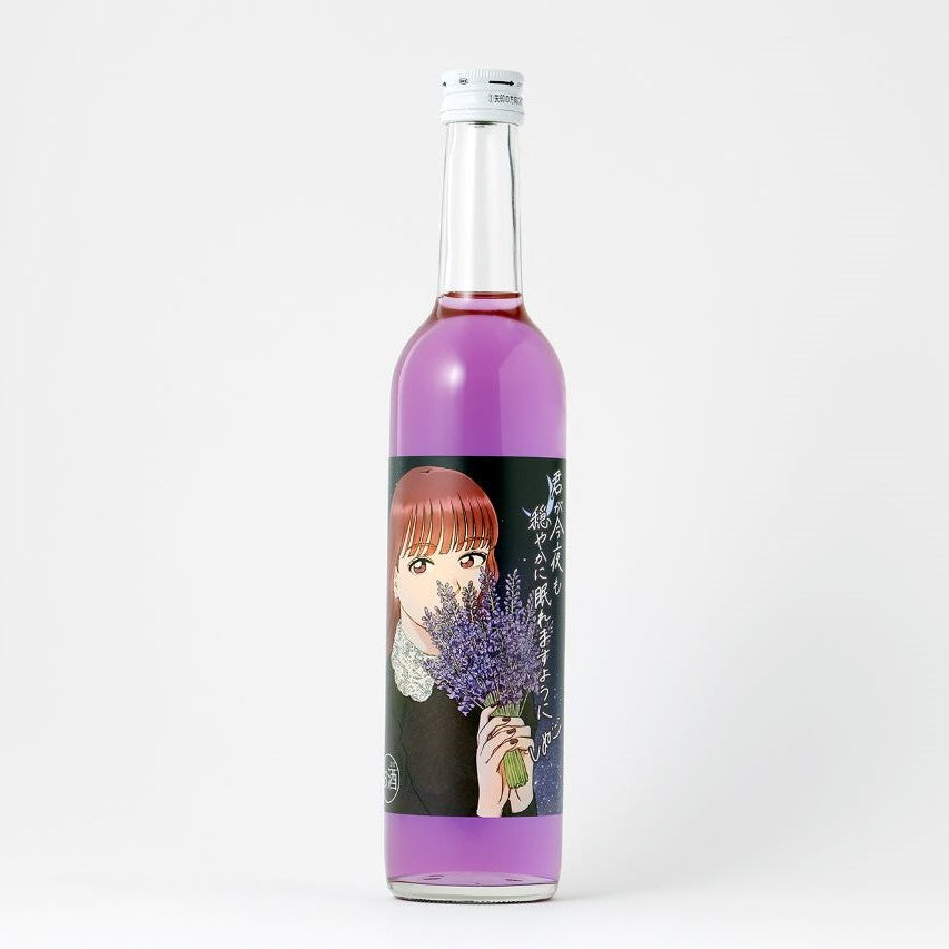 お酒にぴったりなラベンダー色のマグカップです。ラベルとおそろいのイラストは、しぬこさんのアイコンでおなじみ「たまごひめ」さんの描き下ろし。「君が今夜も穏やかに眠れますように」を注いだら、そのままはもちろんミルク割りのほか、電子レンジなどで軽く温めてみるのもおすすめです。ラベンダーの香りがふわりと訪れたら、今夜は忘れられない。