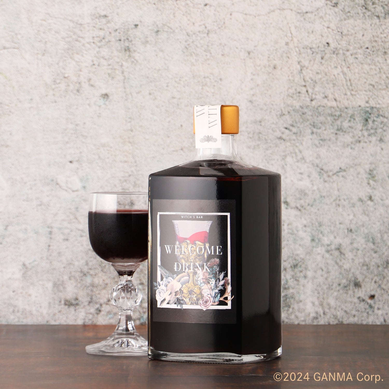 隠れ家バー「魔女の酒場」のウェルカムドリンク「ようこそ魔女の酒場へ」をイメージしたお酒です。お酒の選定から、ラベルや化粧箱、購入特典のコースターのデザイン監修まで店主の天近くるみさんが担当しました。
