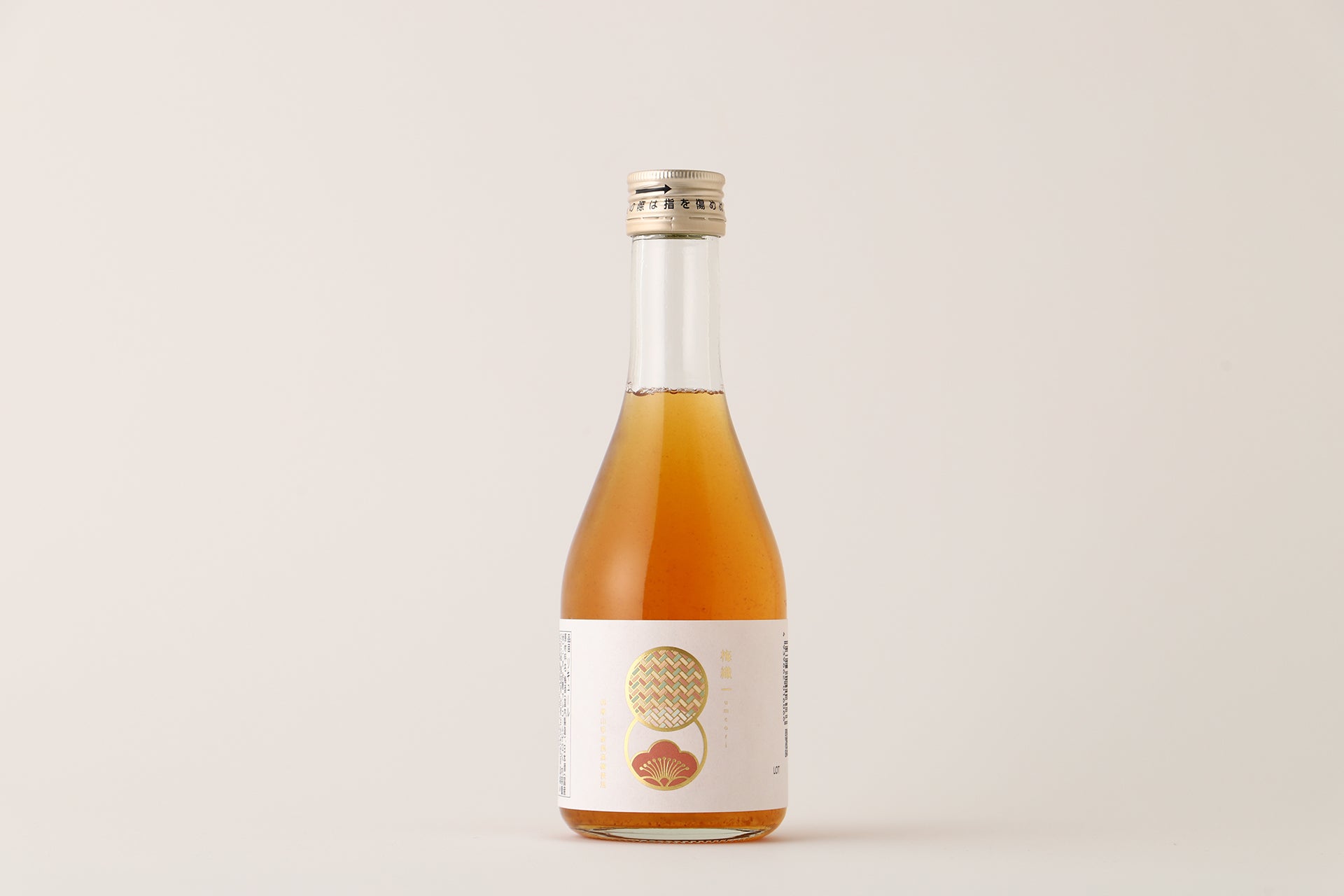 和歌山県産梅の爽やかな酸味と、純米大吟醸酒がもたらす深いコクが調和した、果肉たっぷりの梅酒です。金銀の箔紙と絹糸を織り上げる伝統工芸「鹿島錦」のように、素材同士が美しく重なり合う洗練された味わいに仕上げました。