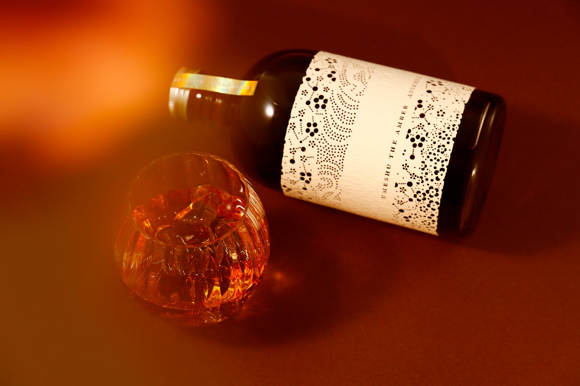 ボトルを包む白いラベルは、紀州文化の一つである型紙の梅文様。細かな文様の窓からは、時をかけて色付いた琥珀色の液体が顔を覗かせます。それはまさに「琥珀色を愛でながら味わう」ためにつくられた特別なデザイン。特別な日や特別な人に届けるハイクラスな1本です。