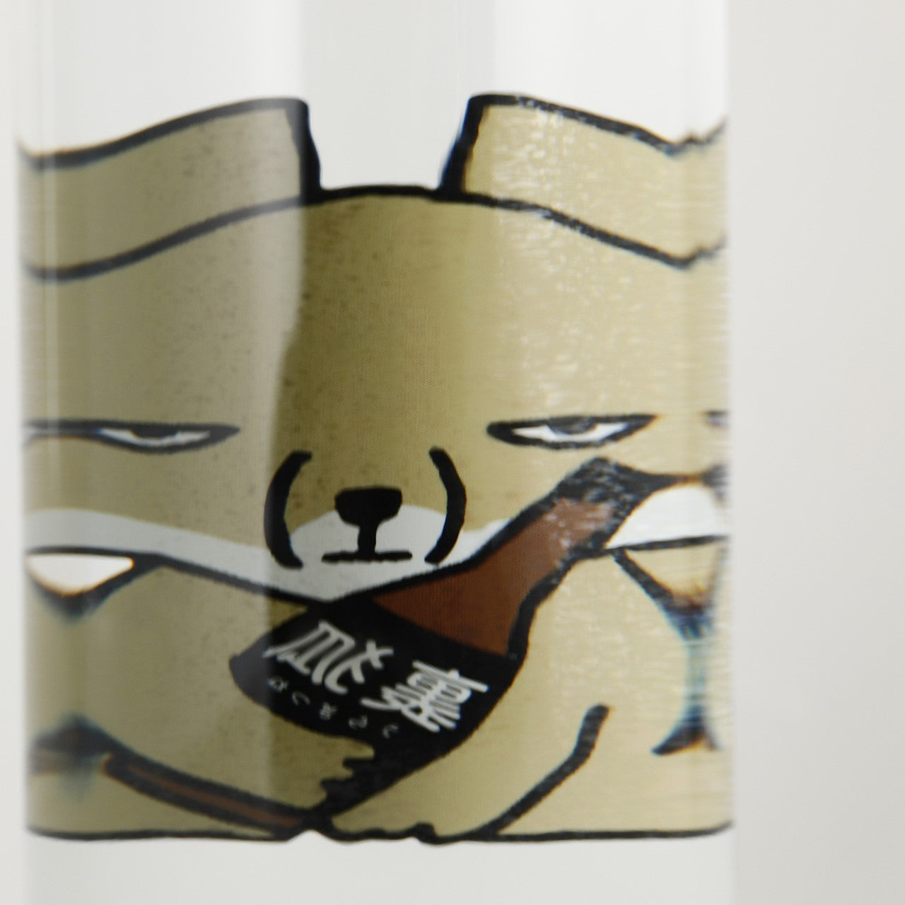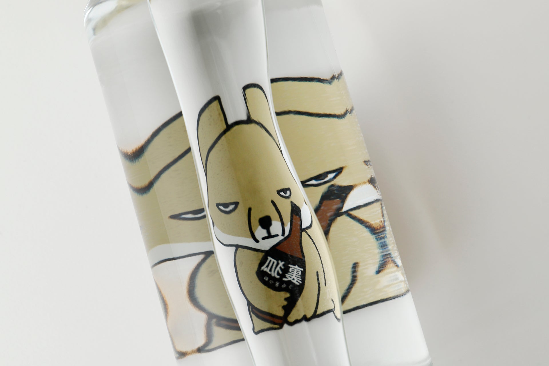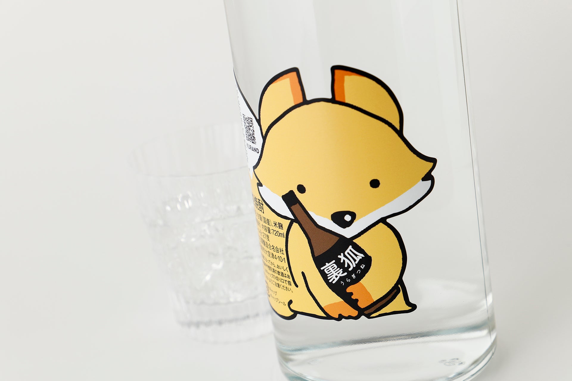 ラベルの表側にいるのは酒瓶を手にもつ1匹の狐。あどけない表情でこちらを見つめて、1本の焼酎を勧めてきます。ラベルを裏返すと、現れるのはむっすりとした独特の表情を見せる「チベットスナギツネ」。大真面目に焼酎を勧めていますが、ニヒルな表情のままお酒を通して膨張したその姿に、なんだかクスッとしてしまいます。表の狐と裏の狐、あなたはどちらの狐がお好みですか?