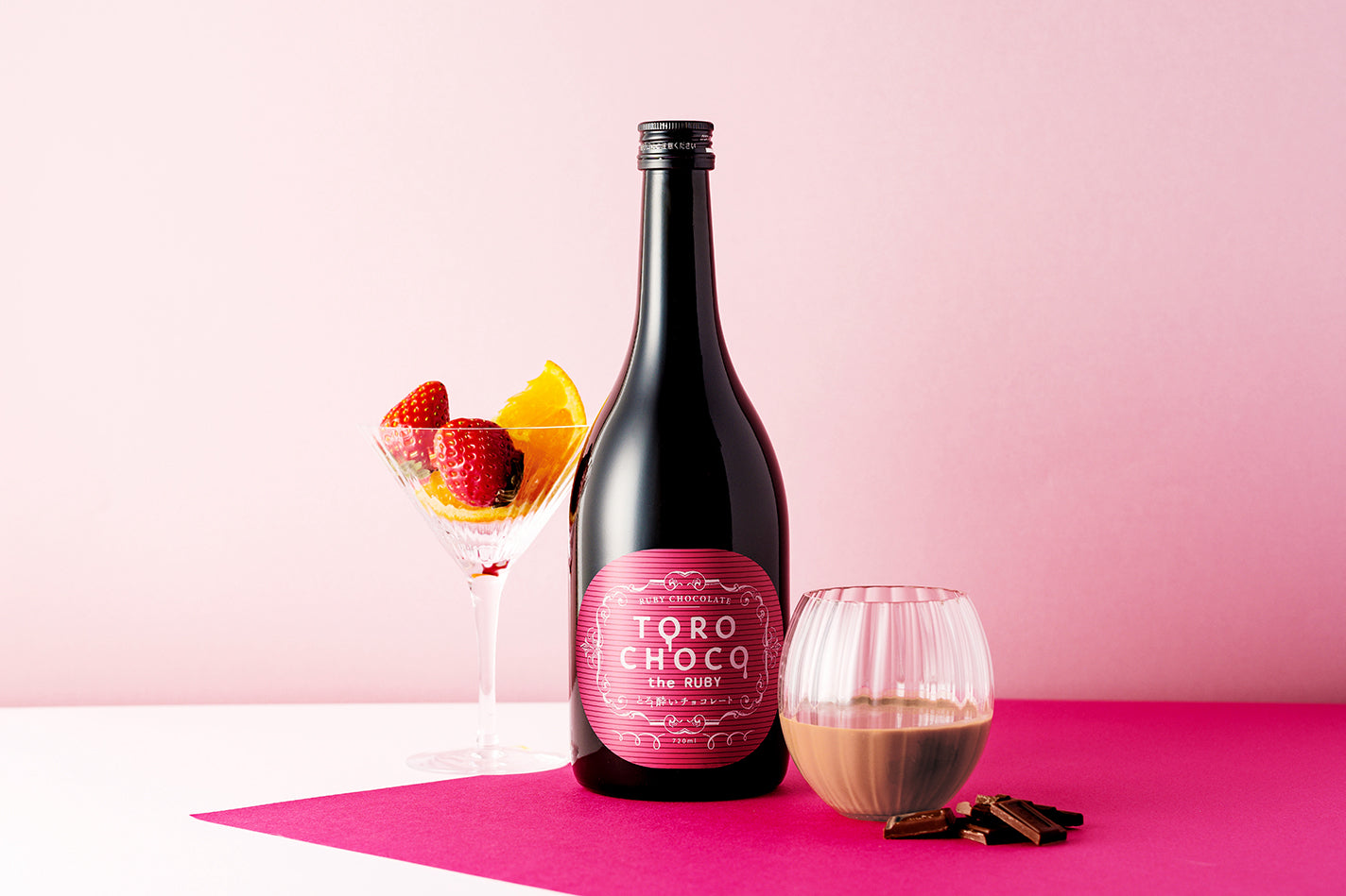 「TOROCHOCO the RUBY」は、天然由来のピンク色とベリーのような甘酸っぱさの「ルビーチョコレート」を贅沢に使用した、ルビーチョコレートリキュールです。さらりと優しい舌触りと爽やかな甘酸っぱさが、チョコレートのコクとバランスよく重なり、上品で華やかな味わい。この時期だけのご褒美リキュールです。