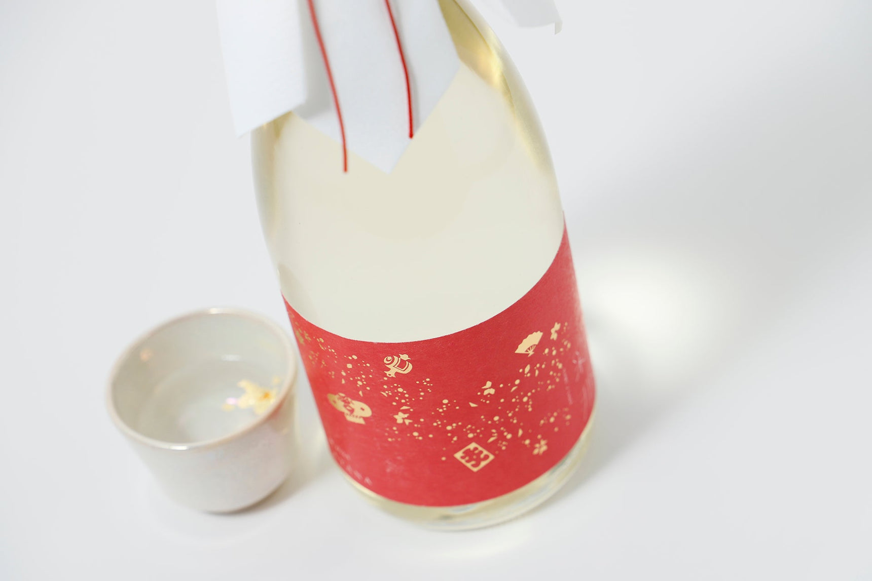 お酒を晴れやかに彩る金箔付き。新年を祝う2024年限定のラベルでお届けします。