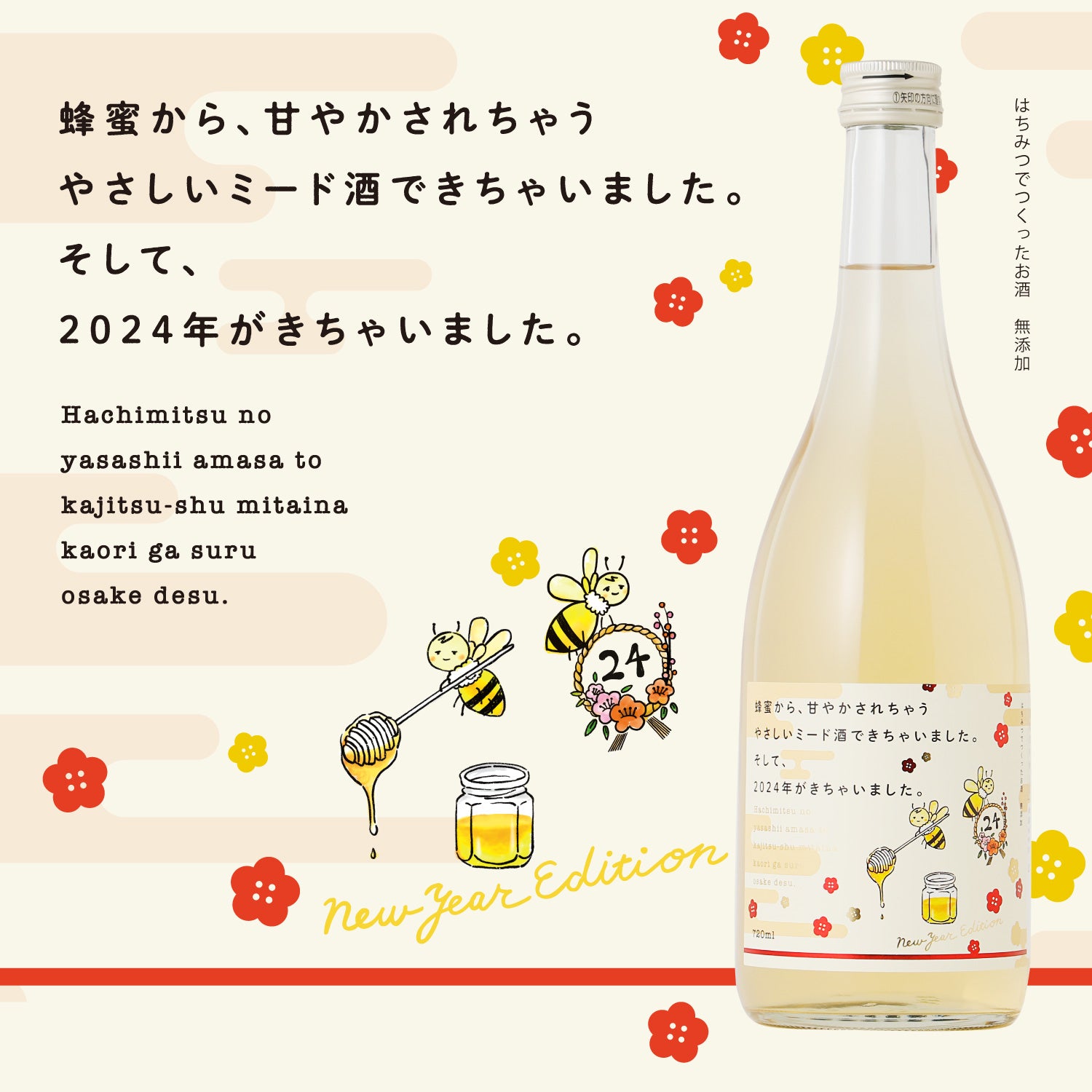 栃木県大田原市の酒蔵が手がけた、無添加・無着色のやさしいハニーテイストが特徴のお酒です。蜂蜜のコクのある甘みと日本酒の吟醸香を思わせる爽やかな香りが口の中でまろやかに広がります。蜂たちと新年を祝う、2024年限定のラベルでお届けします。