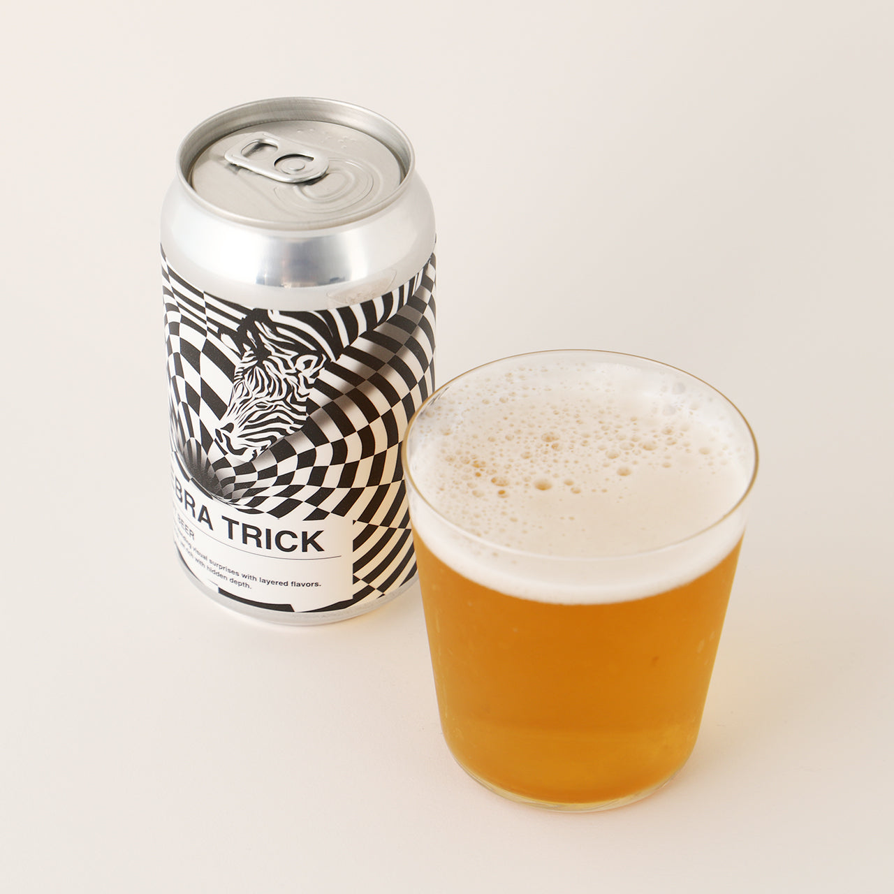 まるでだまし絵の中に迷い込んだようなラベルのデザイン。目を奪うのは吸い込まれそうなトリックアート、そしてその中を歩くシマウマ。そんな奇抜な見た目とは裏腹に、味わいは麦芽の穏やかで優しい甘さが広がります。そこにじんわりと広がる奥深さは、草原に悠然と佇むシマウマのよう。飲めば、飲むほどに「落ちていく」……。そんなビールのトリックに、あなたもきっとハマっていく。